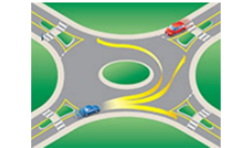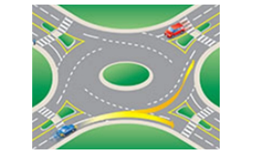 Select the correct lane for your exit and yield to traffic that is already in the roundabout.