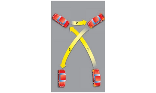 4.When two vehicles from opposite directions meet in an intersection and both intend to turn left, what should they do?