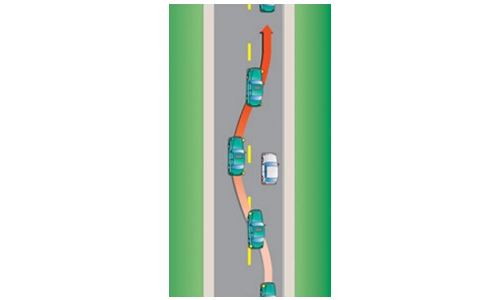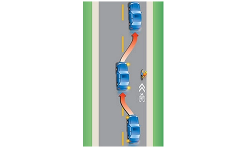 Any deviation from a straight line, such as moving around parked cars, requires proper signaling and checking to alert other drivers to your intentions.